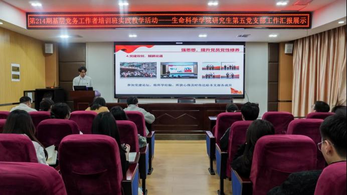 (摄影:曹淼淼 通讯:曹淼淼)11月28日下午,由必赢集团网站研究生第五党支部承办的学校第214期基层党务工作者培训班——学生党支部书记观摩交流活动在学院二楼学术报告厅顺利开展,武昌校区学生党支部书记代表、部分副书记和组织员,以及生科院部分学生党员参加活动。活动由研究生第五党支部书记黄中正主持。